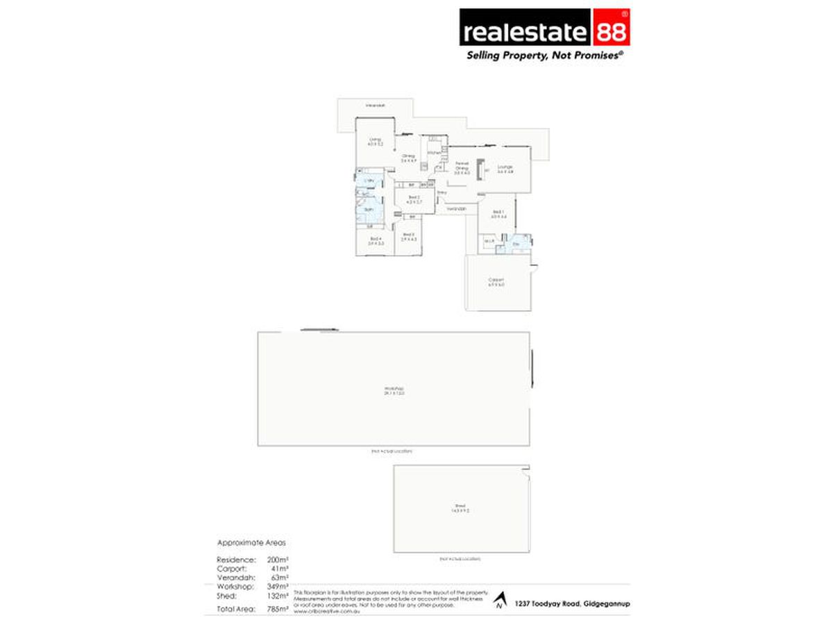 Residence: 200sqm | Carport: 41sqm | Veranda: 63sqm | Workshop: 349sqm | Shed: 132sqm | Land Total: 33.0451 Hectares (81.7 Acres)