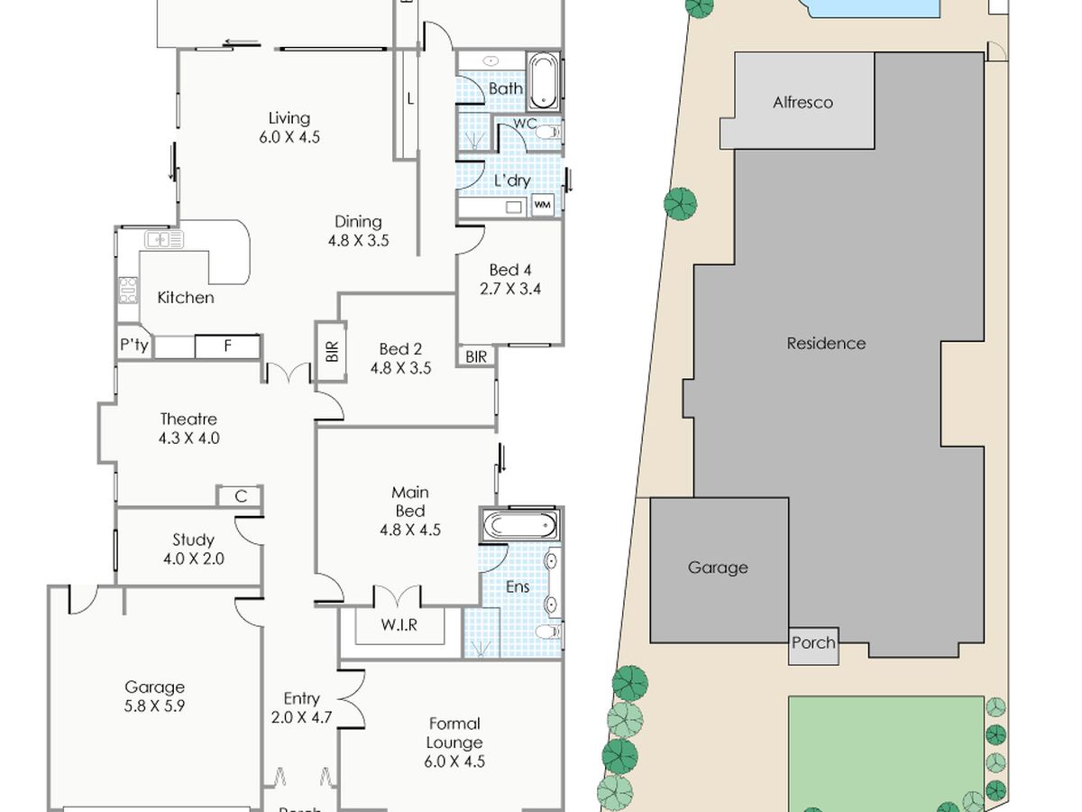 - Polished timber flooring in hallway and open-plan living area and carpet in the formal lounge, study, rumpus/theatre and family bedrooms