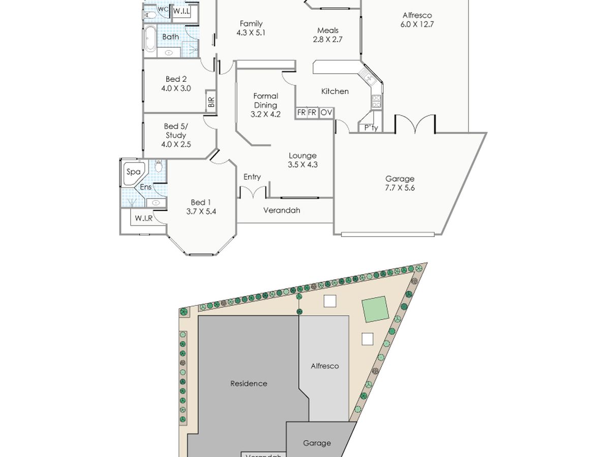 - Lush gardens and mature fruit trees serviced by the retic and bore