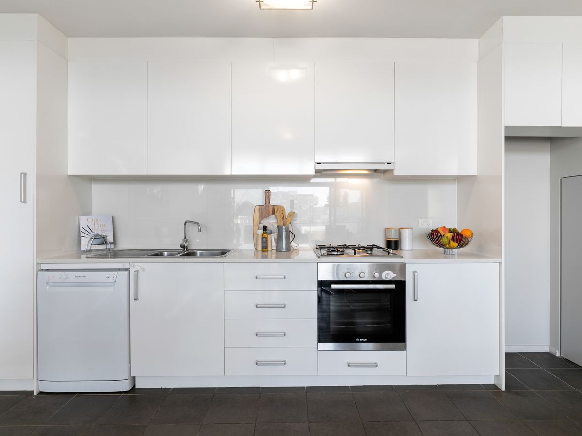 - Modern kitchen with gas cooktop and dishwasher
