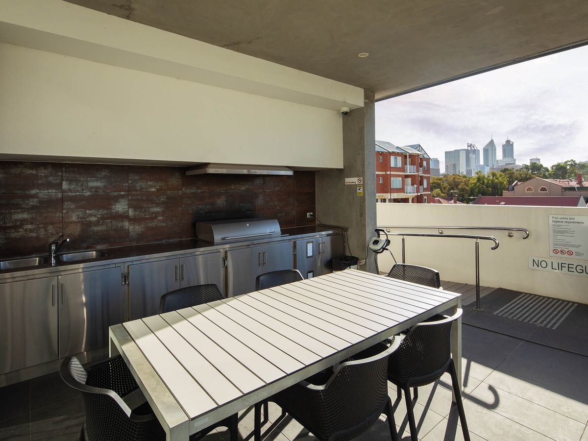 This designer apartment provides one fortunate new owner with a doorway to East Perth, Claisebrook Village & Perth City's cosmopolitan lifestyles! On offer here is an architecturally designed, sun filled & airy abode for you to cherish located an elevator ride & stroll from cosmopolitan Royal Street, Claisebrook Cove, exciting Adelaide Terrace, local trains, free CAT buses & the footbridge to Optus Stadium & Crown Entertainment precinct in Burswood. An open-plan lounge, dining room and kitchen area with tile flooring flows effortlessly to the 17sqm balcony terrace creating the ultimate entertainer's apartment where you can enjoy the sunshine & great views.
