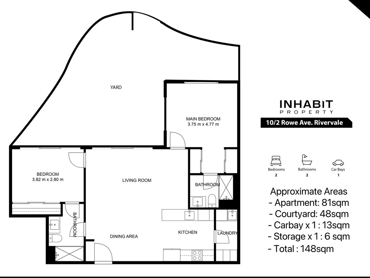 - Internal: 81sqm | Courtyard:48 sqm | Carbay: 13sqm | Storeroom: 6sqm | Total: 148sqm