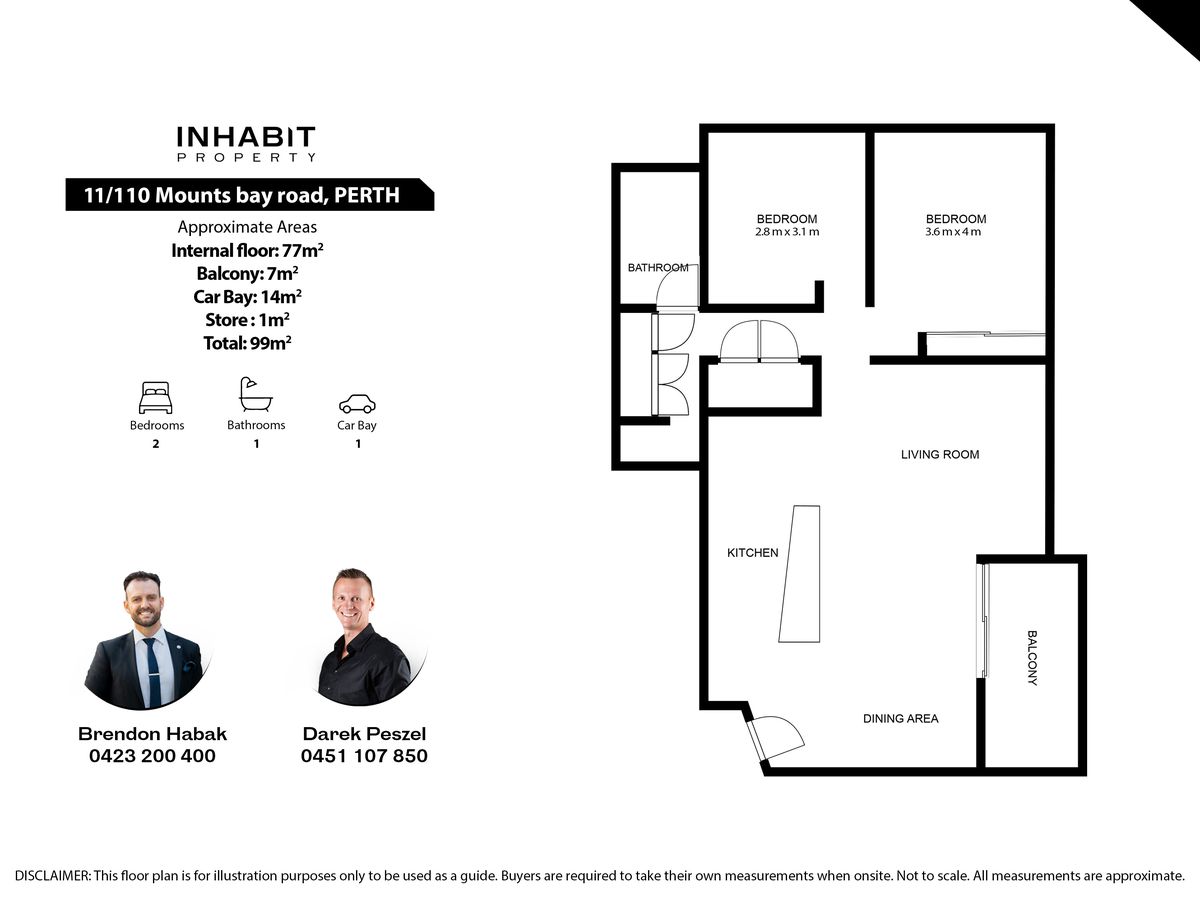 - Internal: 77sqm | Balcony: 7sqm | Cars: 14sqm | Store: 1sqm | Total: 99sqm