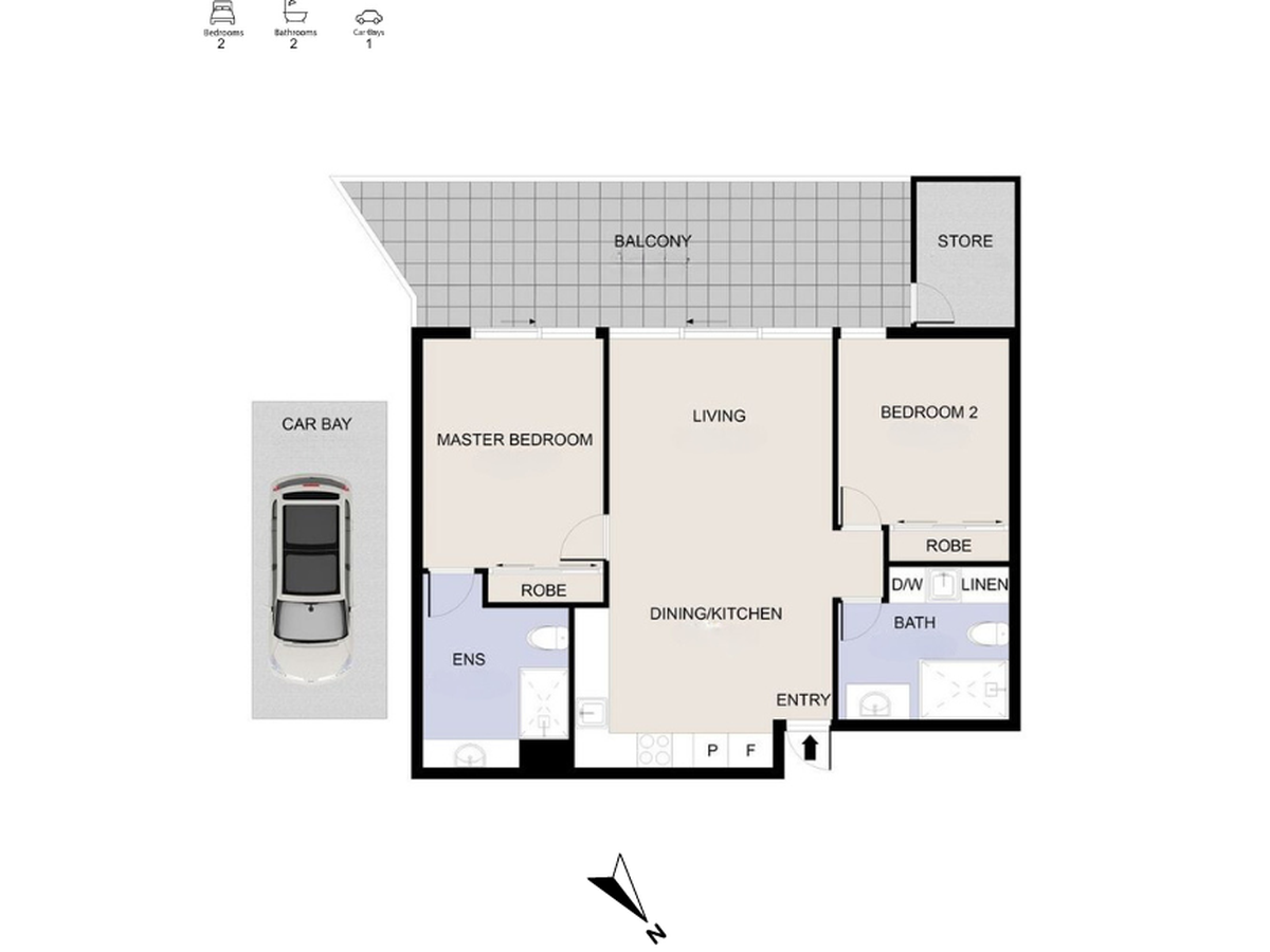 One of the highlights of this apartment is the large private balcony (the biggest on the level) offering sweeping city viewsan ideal space for relaxation or entertaining guests. Additional features include a secure car bay, and a generously sized storeroom conveniently located on the balcony.