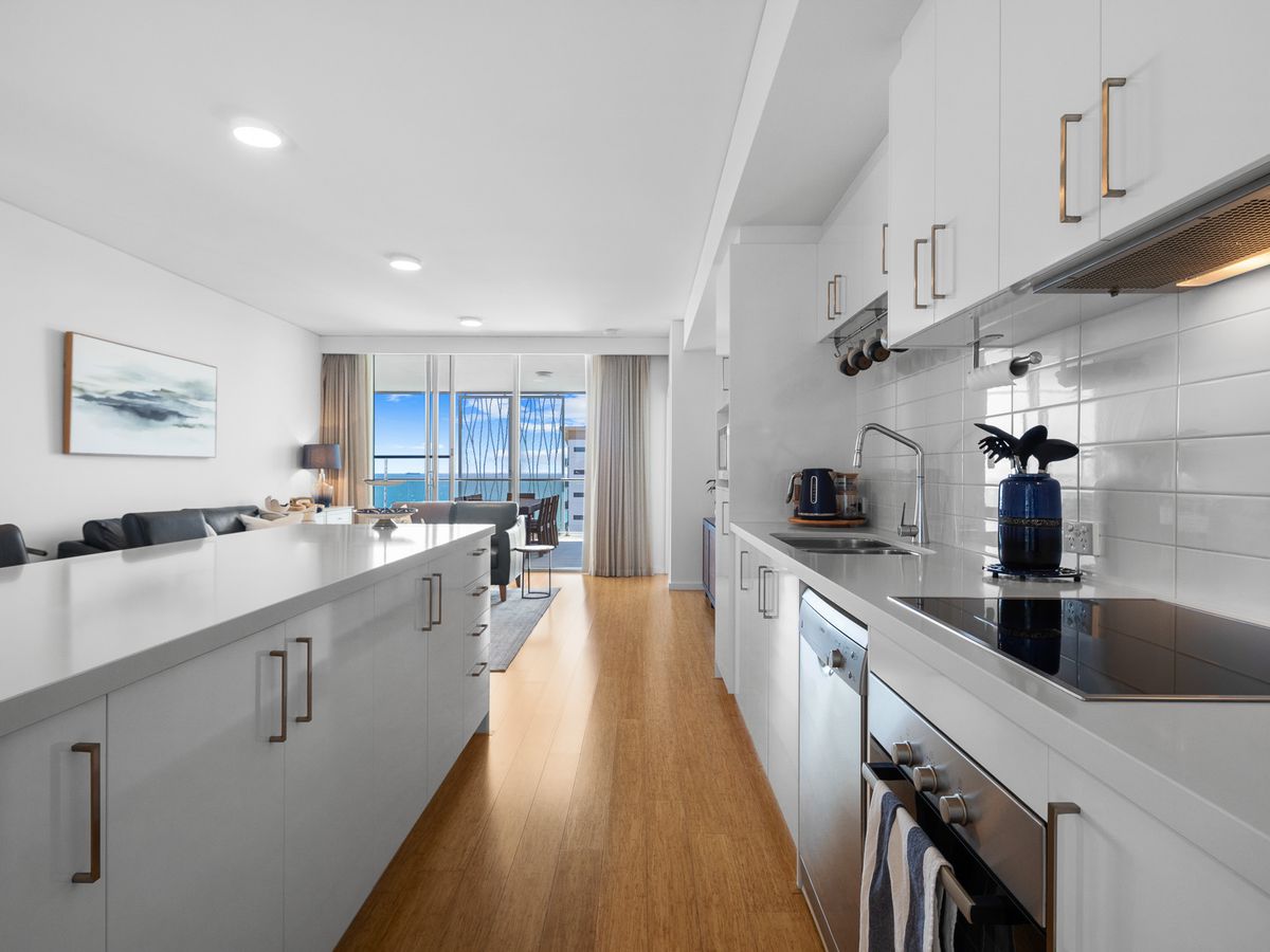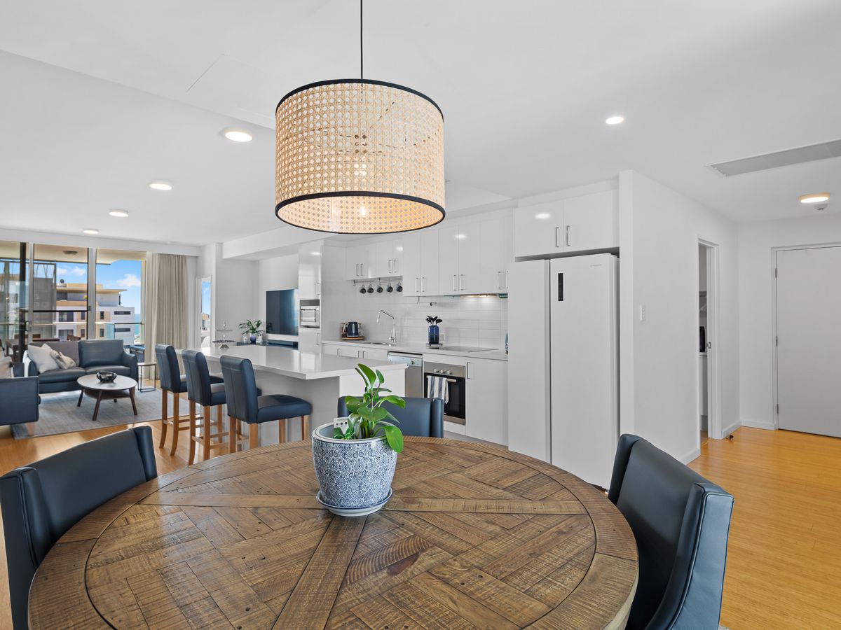 The open-plan living and dining areas, adorned with elegant floorboards, flow onto a sprawling 36sqm balconyideal for taking in the breathtaking ocean vistas. The spacious master bedroom features a walk-in robe and an en-suite with a double shower, while two well-sized secondary bedrooms provide flexibility, with one opening onto a second 17sqm private balcony.
