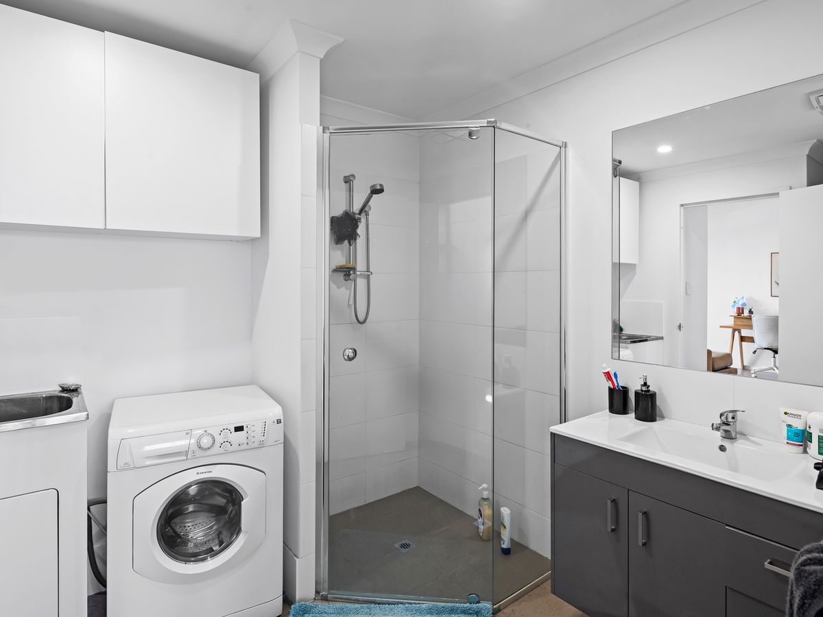 Both generously sized bedrooms have been thoughtfully designed to prioritise comfort and natural light. Large windows flood each room with sunlight and invite refreshing cross-breezes, creating a bright, airy ambiance throughout the apartment. The master suite offers the added luxury of a private en-suite, serving as a tranquil retreat complete with built-in wardrobes that provide ample storage. The second bedroom also features built-in robes and enjoys easy access to a stylish dual-entry bathroom, which connects to both the bedroom and the main living areaideal for guests. This bathroom cleverly incorporates a discreetly integrated laundry, combining convenience and functionality for seamless everyday living.