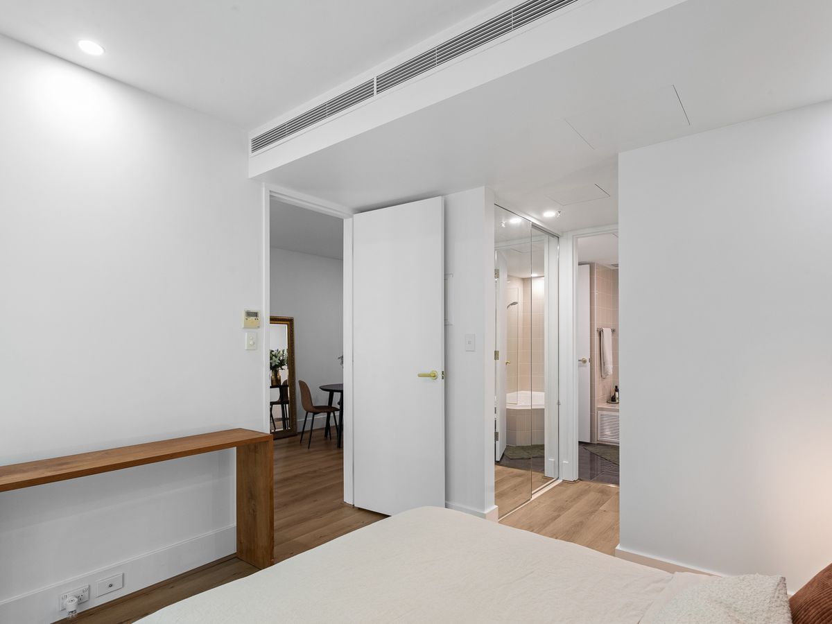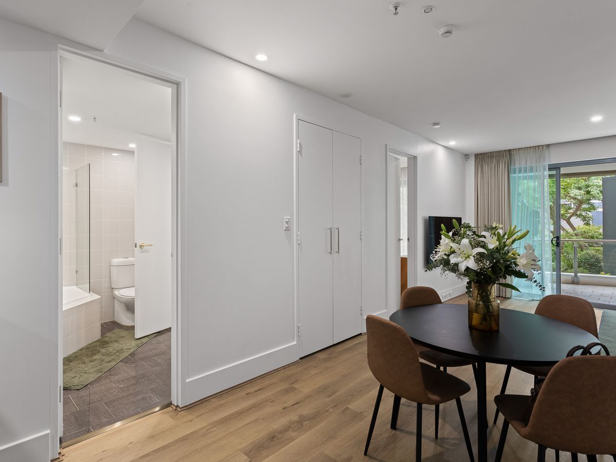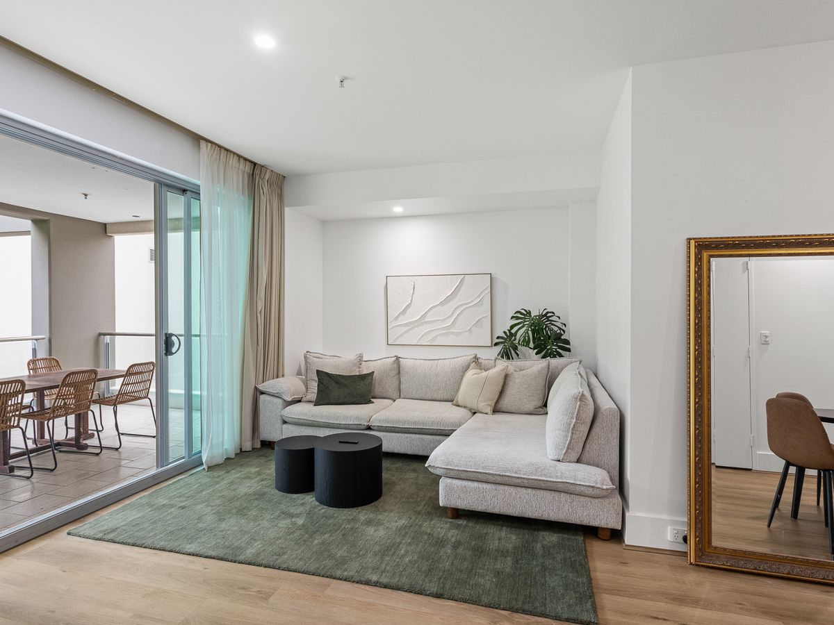 Overlooking a lush riverside park with stunning Swan River views, this exceptional apartment at 65/42-52 Terrace Road, East Perth, offers a perfect blend of luxury and convenience. Floor-to-ceiling windows fill the open-plan living area with natural light, enhancing the connection to the serene balcony. The stylish gourmet kitchen, complete with appliances and stone benchtops, effortlessly connects to the dining and lounge space, making it ideal for both relaxing and entertaining. A spacious balcony, surrounded by greenery, offers a peaceful retreat. The bedroom features built-in wardrobes and balcony access, creating a private escape. A sleek, spa-like bathroom and ducted air conditioning complete this sophisticated home.