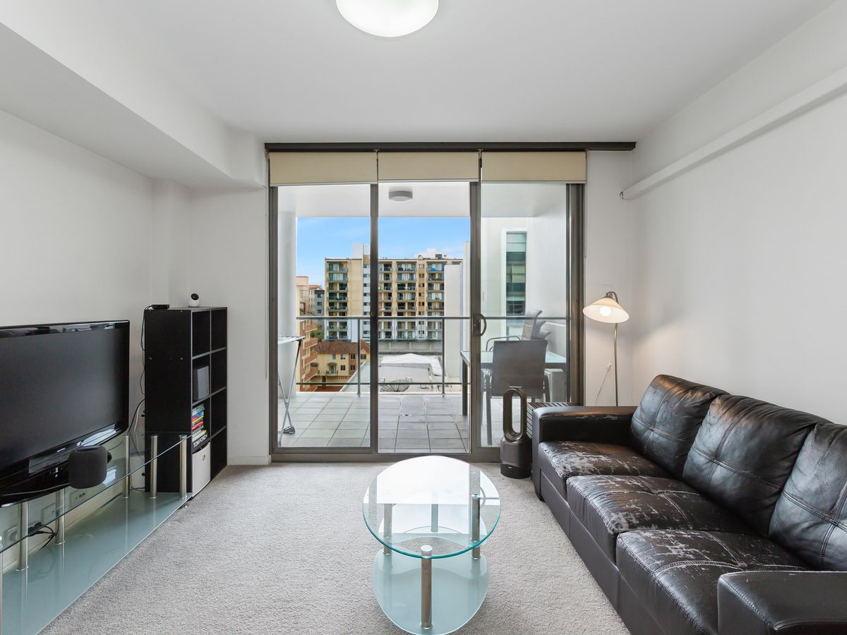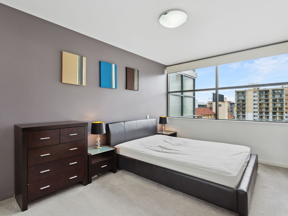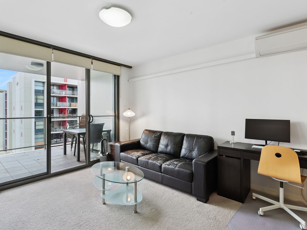 Enjoy open-plan living filled with natural light, a modern kitchen with stone benchtops and dishwasher, and a private balcony overlooking Adelaide Terrace. The bedroom includes built-in storage, and the bathroom is fresh and functional.