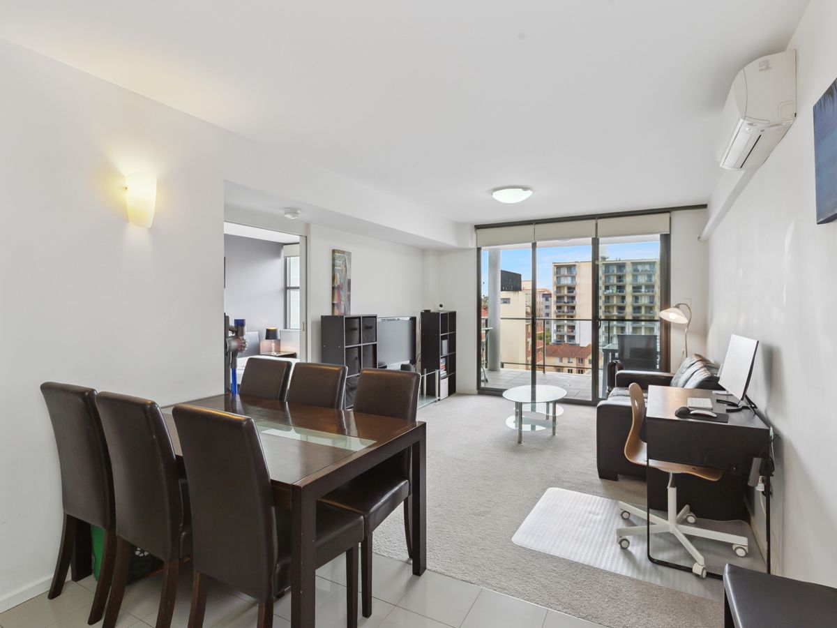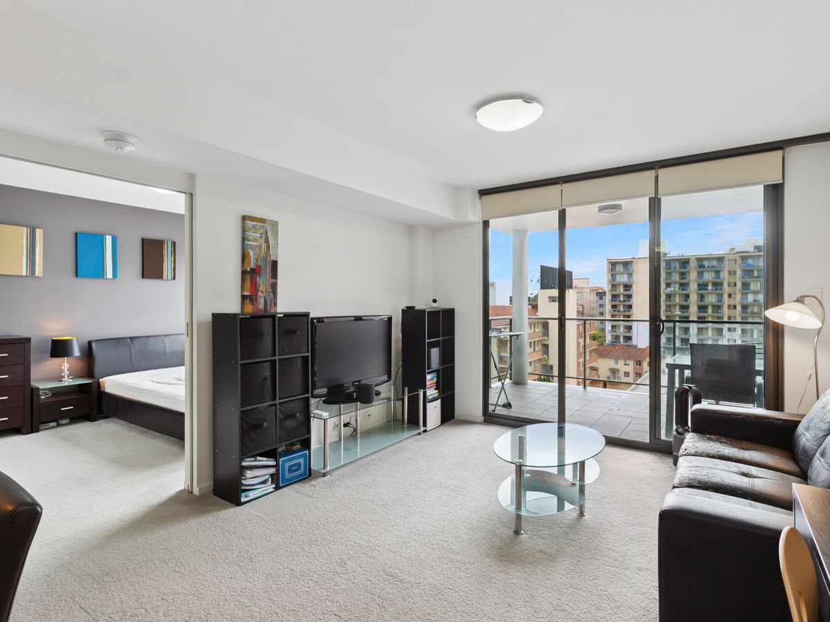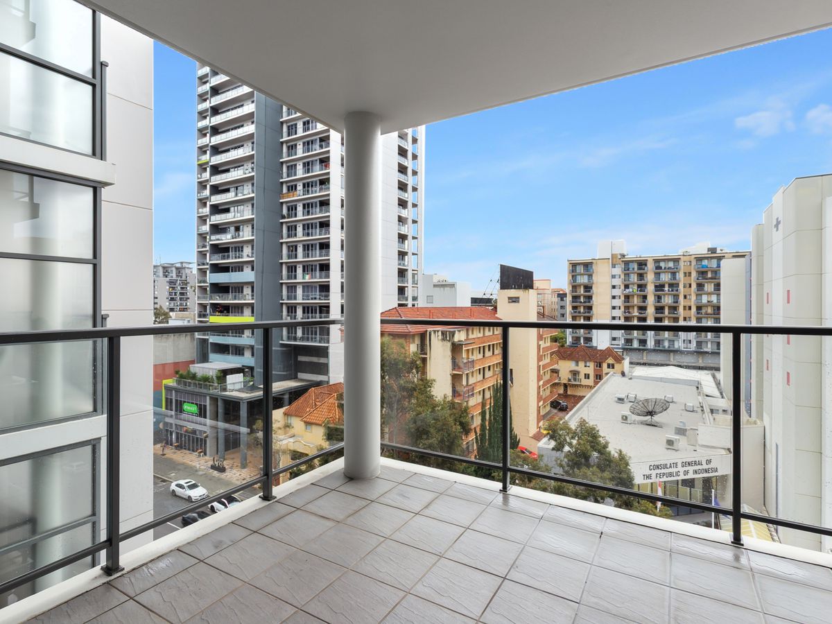 Enjoy open-plan living filled with natural light, a modern kitchen with stone benchtops and dishwasher, and a private balcony overlooking Adelaide Terrace. The bedroom includes built-in storage, and the bathroom is fresh and functional.