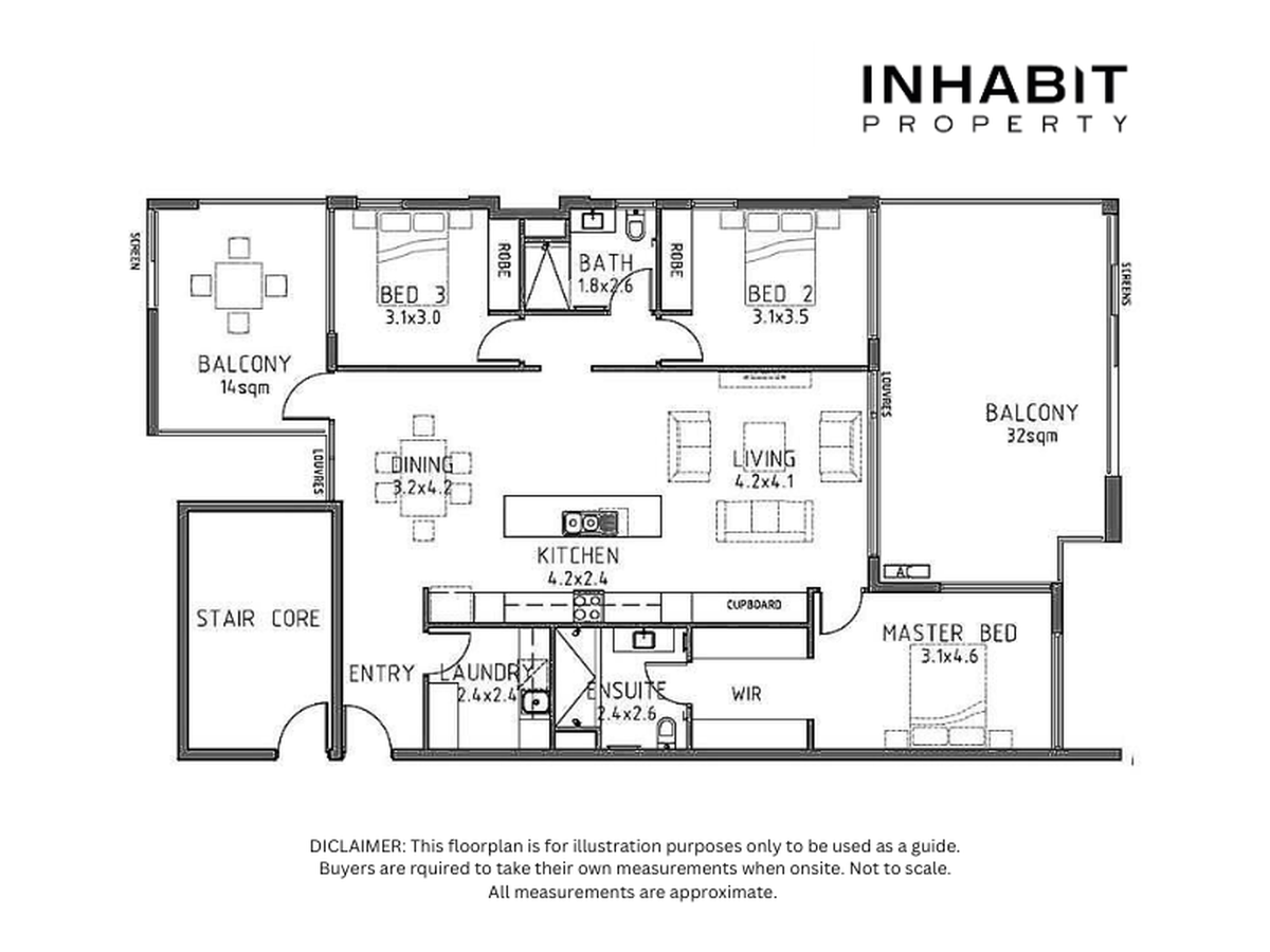 - Internal: 122 sqm | Balconies: 53sqm | Car bays: 26 sqm | Storeroom: 6sqm | Total: 207 sqm