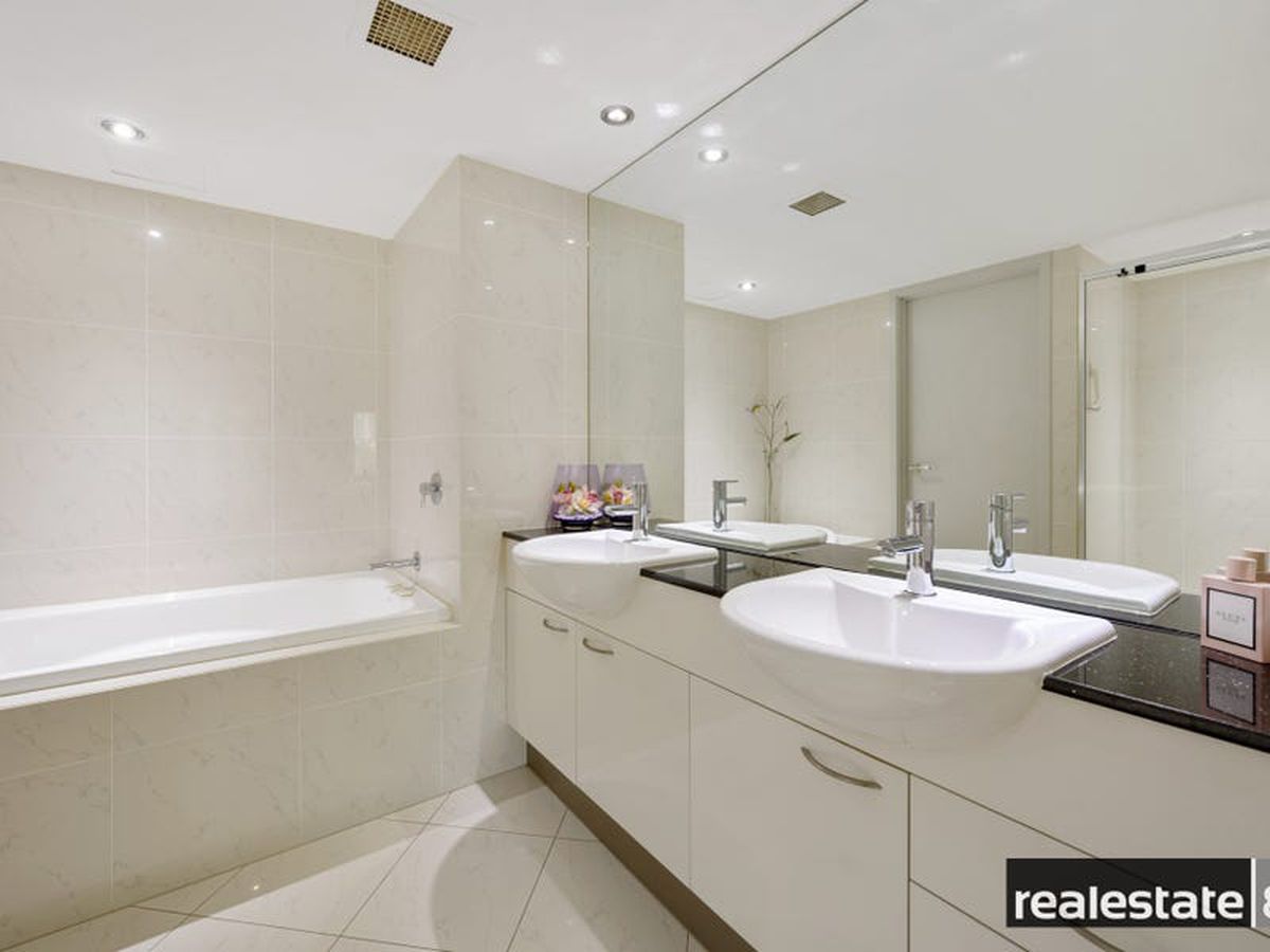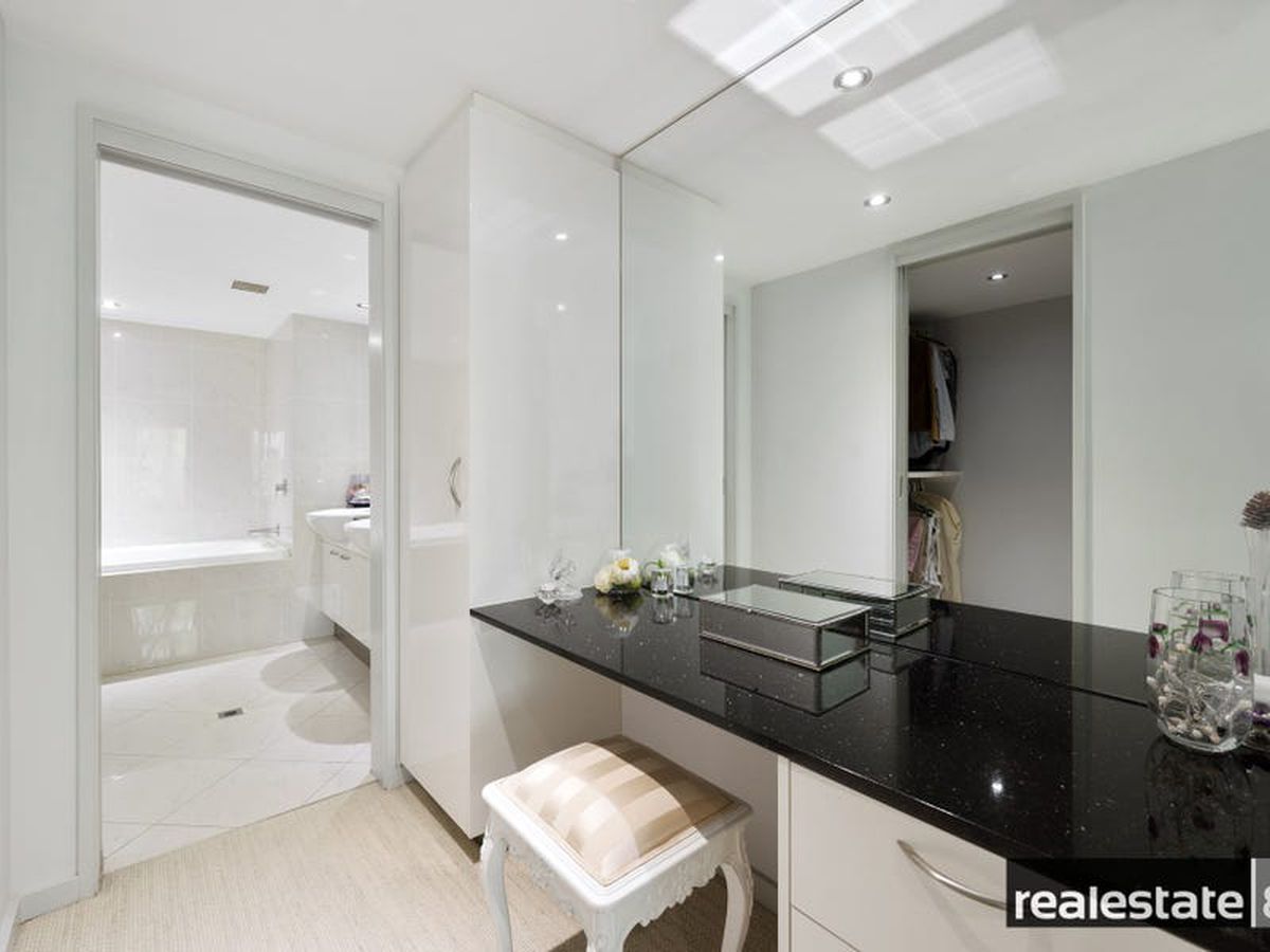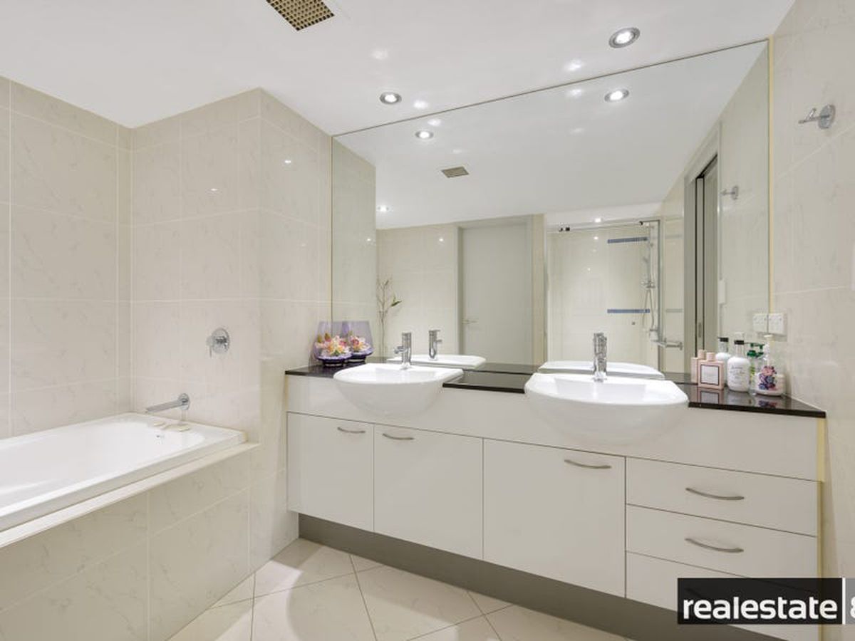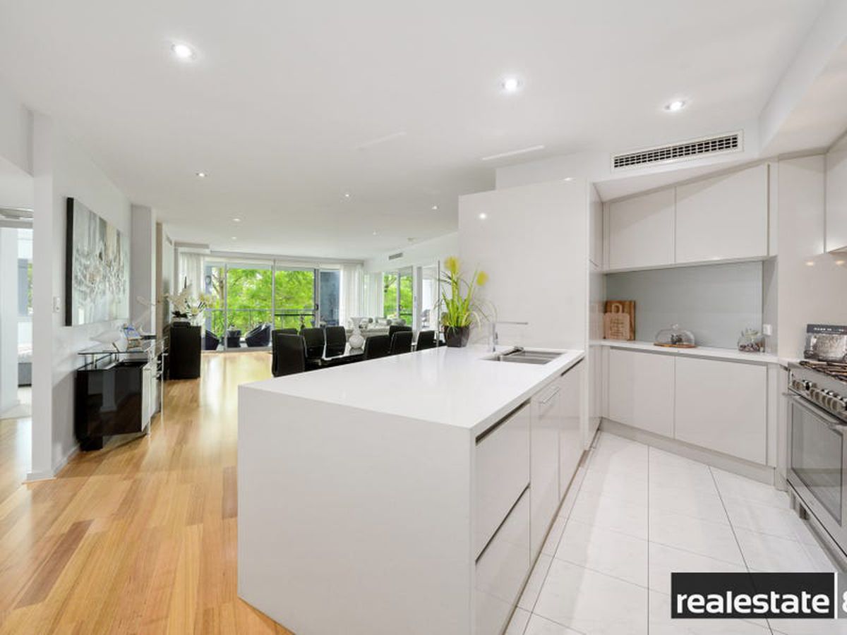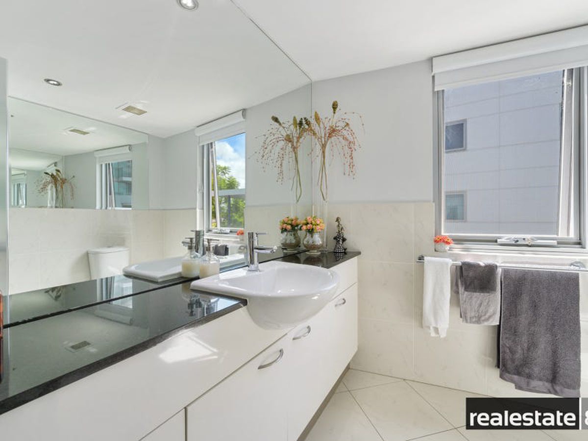The main bedroom is fit for a king & queen with a walk in robe, makeup station/dressing nook, adjoining en suite bathroom and sliding doors opening on to the large balcony that overlooks lush Langley Park and the glistening Swan River. The second & third bedrooms are nicely positioned on the opposite side of the apartment, generous in size and come ready with built-in-wardrobes, plush carpeting, reverse cycle air conditioning and easy access to the chic family bathroom.