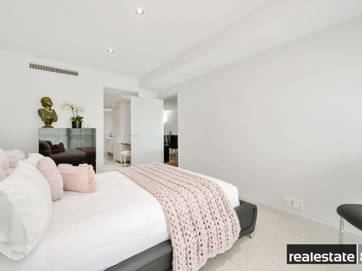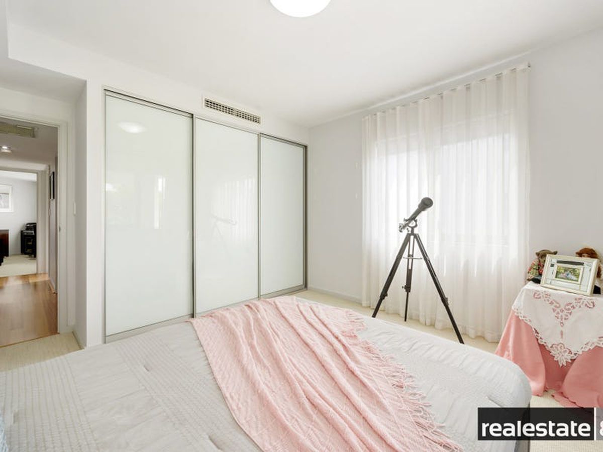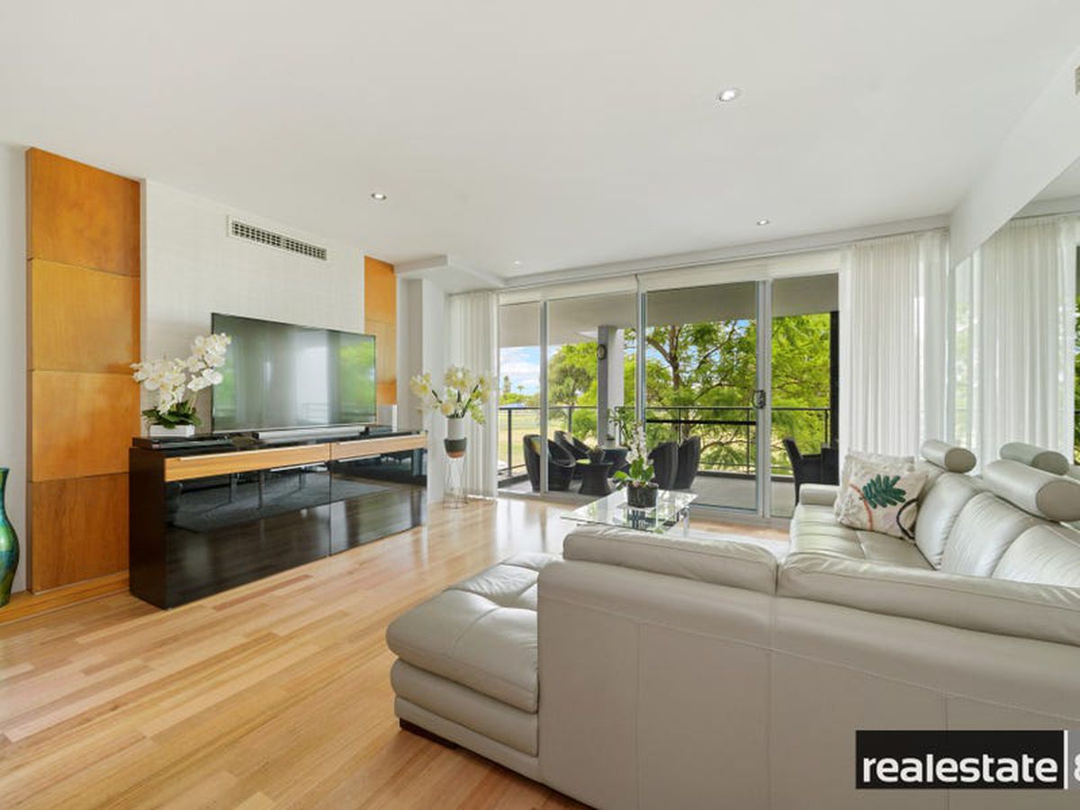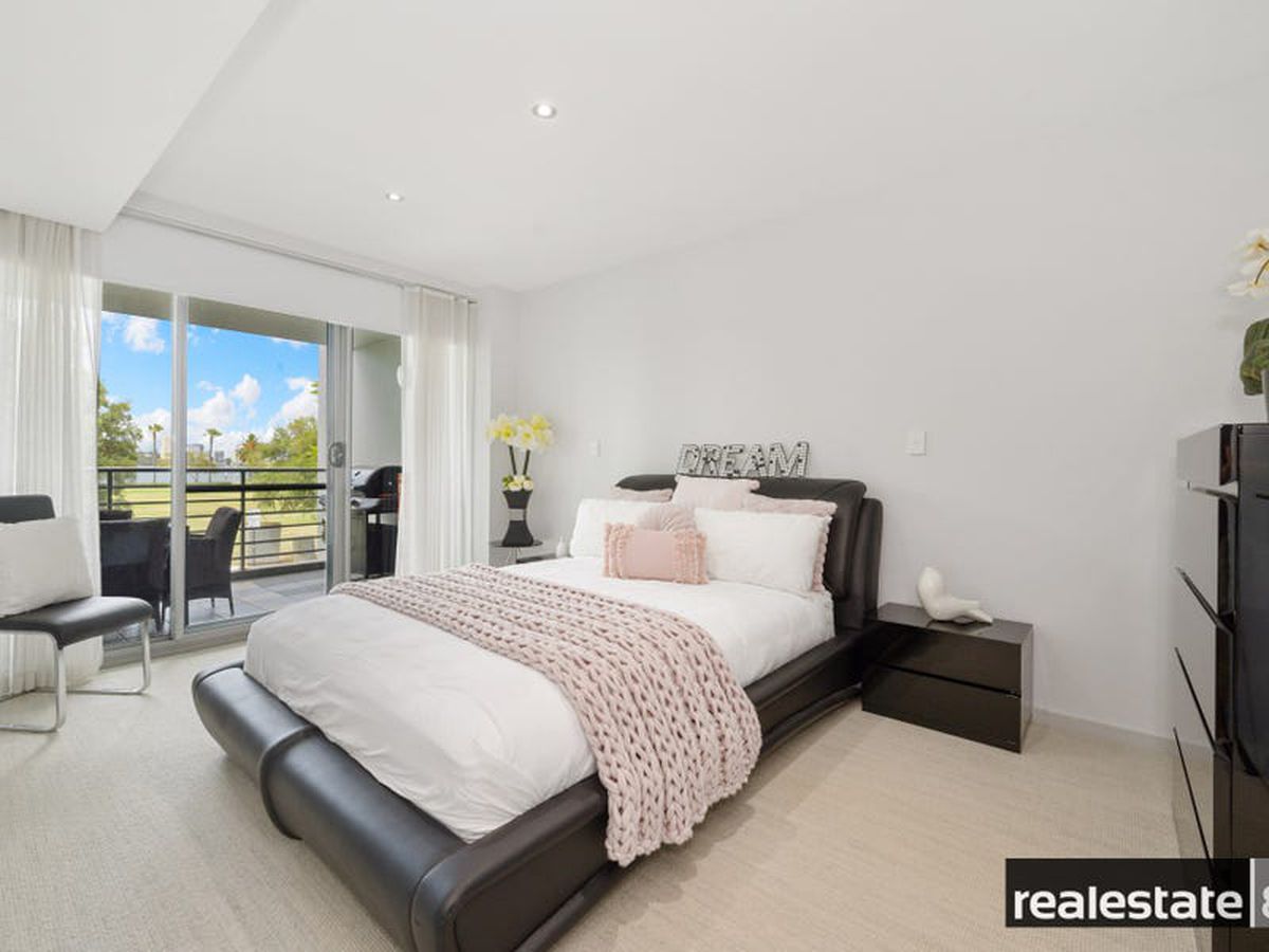 The main bedroom is fit for a king & queen with a walk in robe, makeup station/dressing nook, adjoining en suite bathroom and sliding doors opening on to the large balcony that overlooks lush Langley Park and the glistening Swan River. The second & third bedrooms are nicely positioned on the opposite side of the apartment, generous in size and come ready with built-in-wardrobes, plush carpeting, reverse cycle air conditioning and easy access to the chic family bathroom.