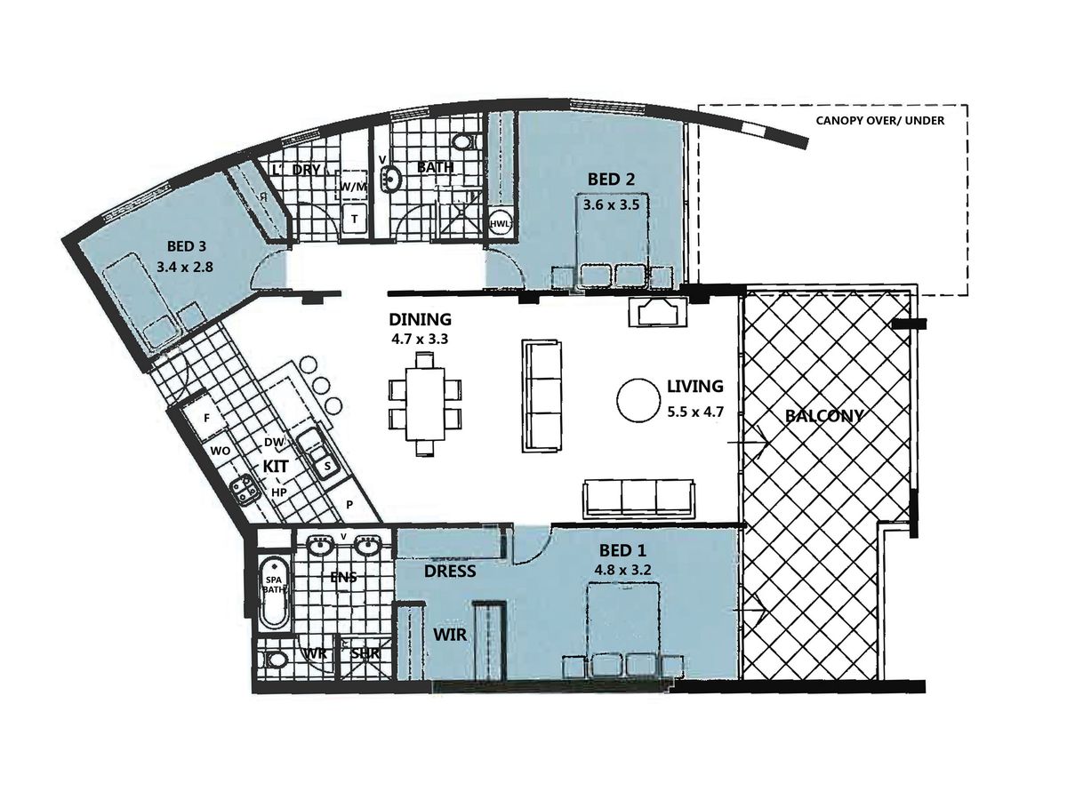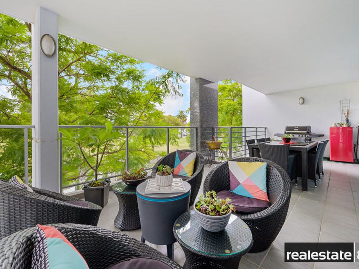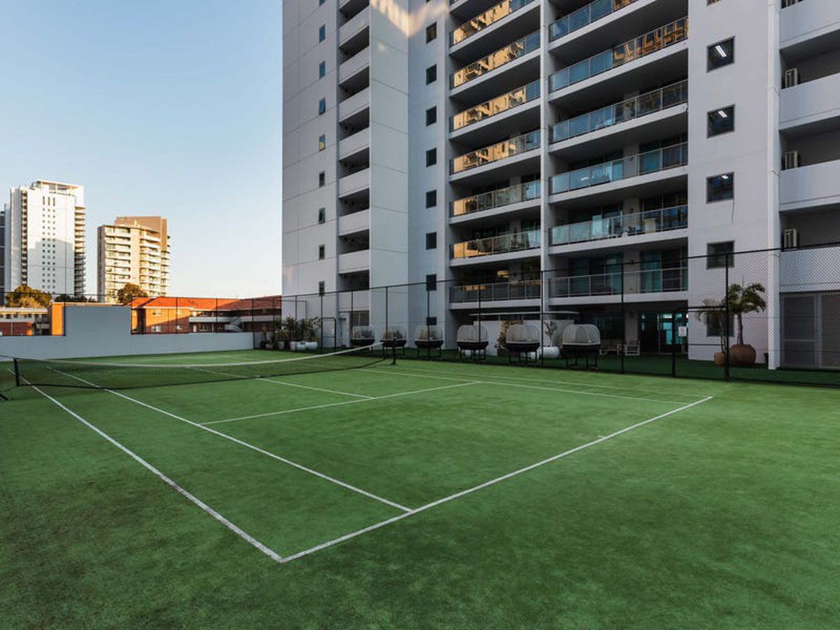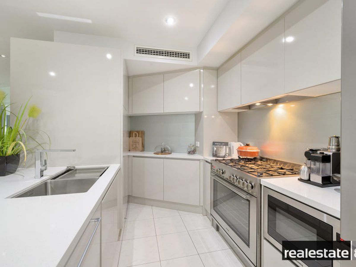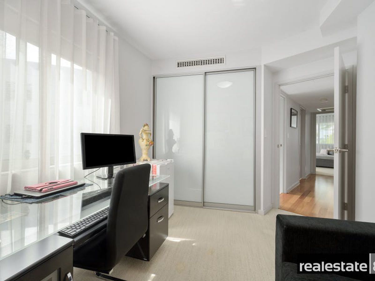 The main bedroom is fit for a king & queen with a walk in robe, makeup station/dressing nook, adjoining en suite bathroom and sliding doors opening on to the large balcony that overlooks lush Langley Park and the glistening Swan River. The second & third bedrooms are nicely positioned on the opposite side of the apartment, generous in size and come ready with built-in-wardrobes, plush carpeting, reverse cycle air conditioning and easy access to the chic family bathroom.
