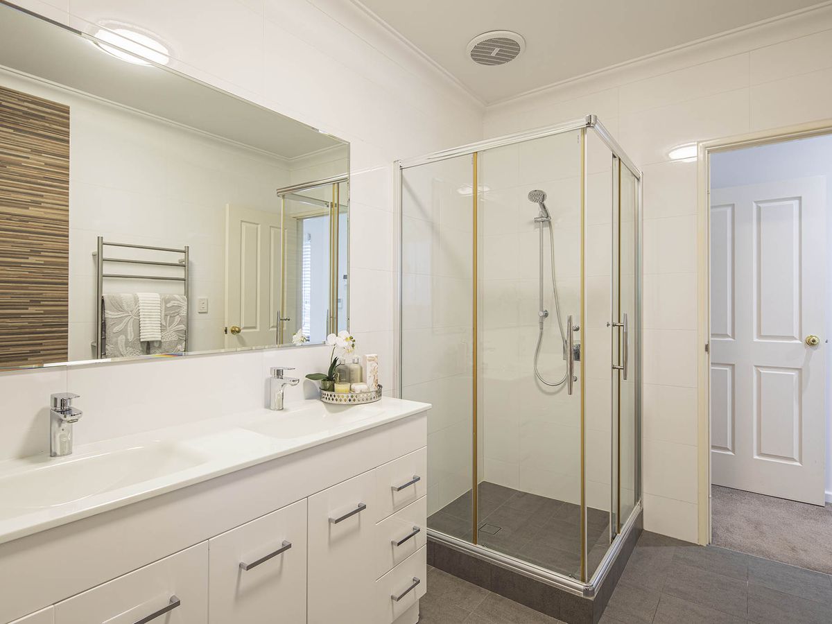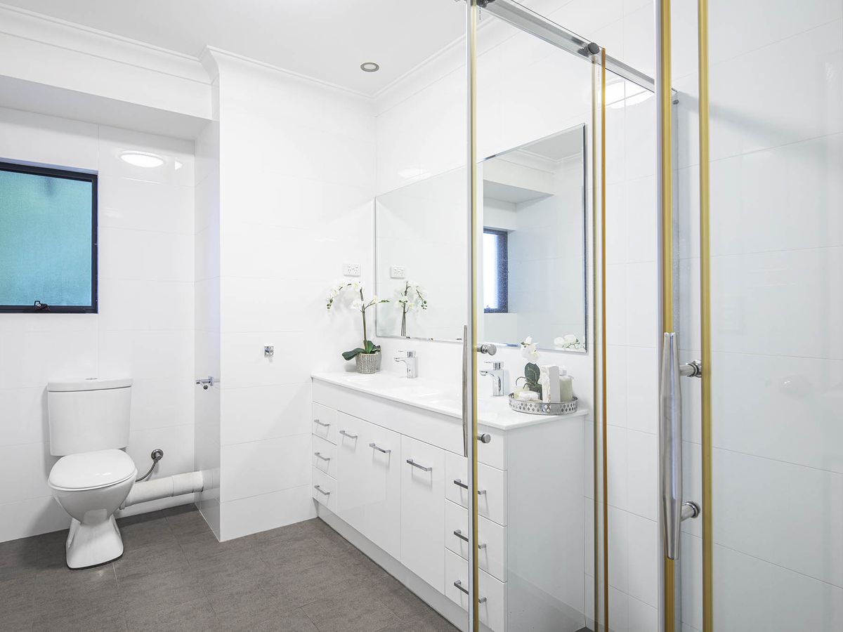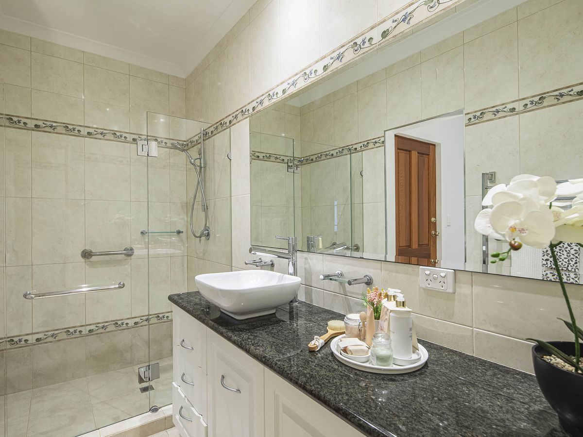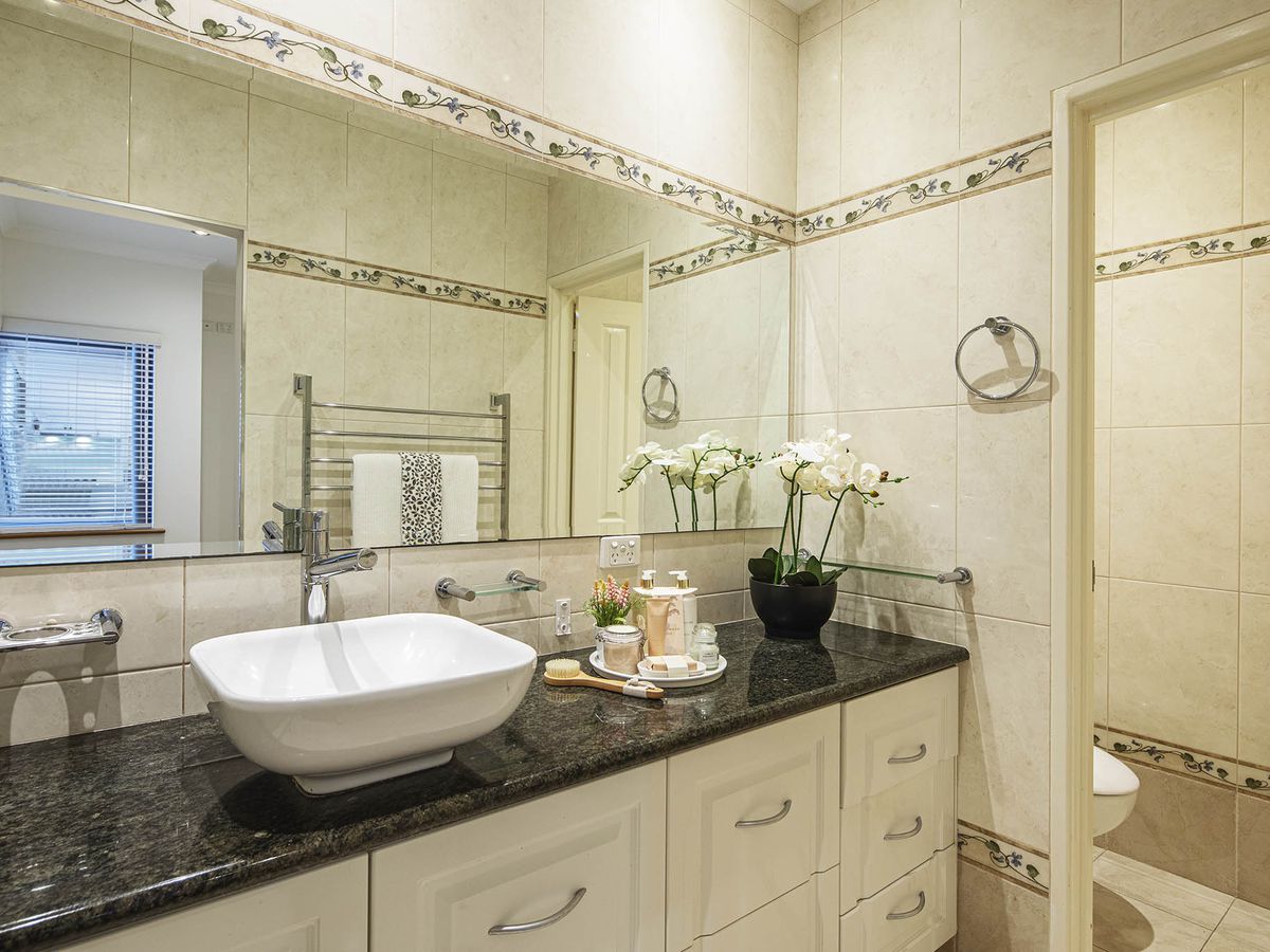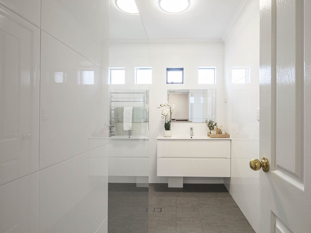 - Chic bathrooms with quality stone, white tiling & custom cabinetry