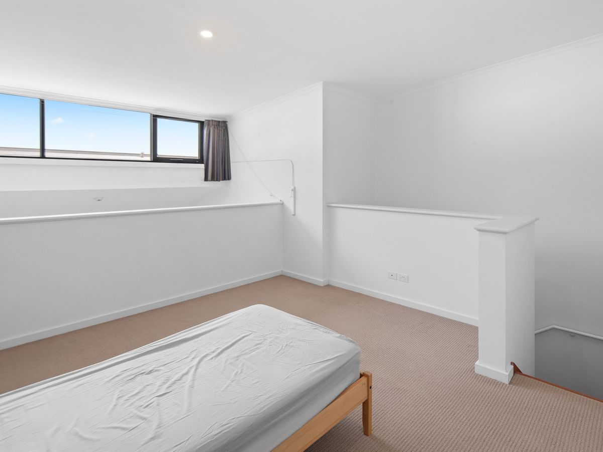 Spread across the second and third floor, the home boasts a free-flowing layout with high ceilings, timber flooring, and a gourmet kitchen featuring stone benchtops and stainless-steel European appliances. The open-plan living area extends to a semi-enclosed wrap-style balcony overlooking the impeccably maintained central garden. Upstairs, the bright master bedroom includes a walk-in robe and ensuite access, while the downstairs bedroom offers a built-in robe, semi-ensuite access and a convenient European style laundry room.
