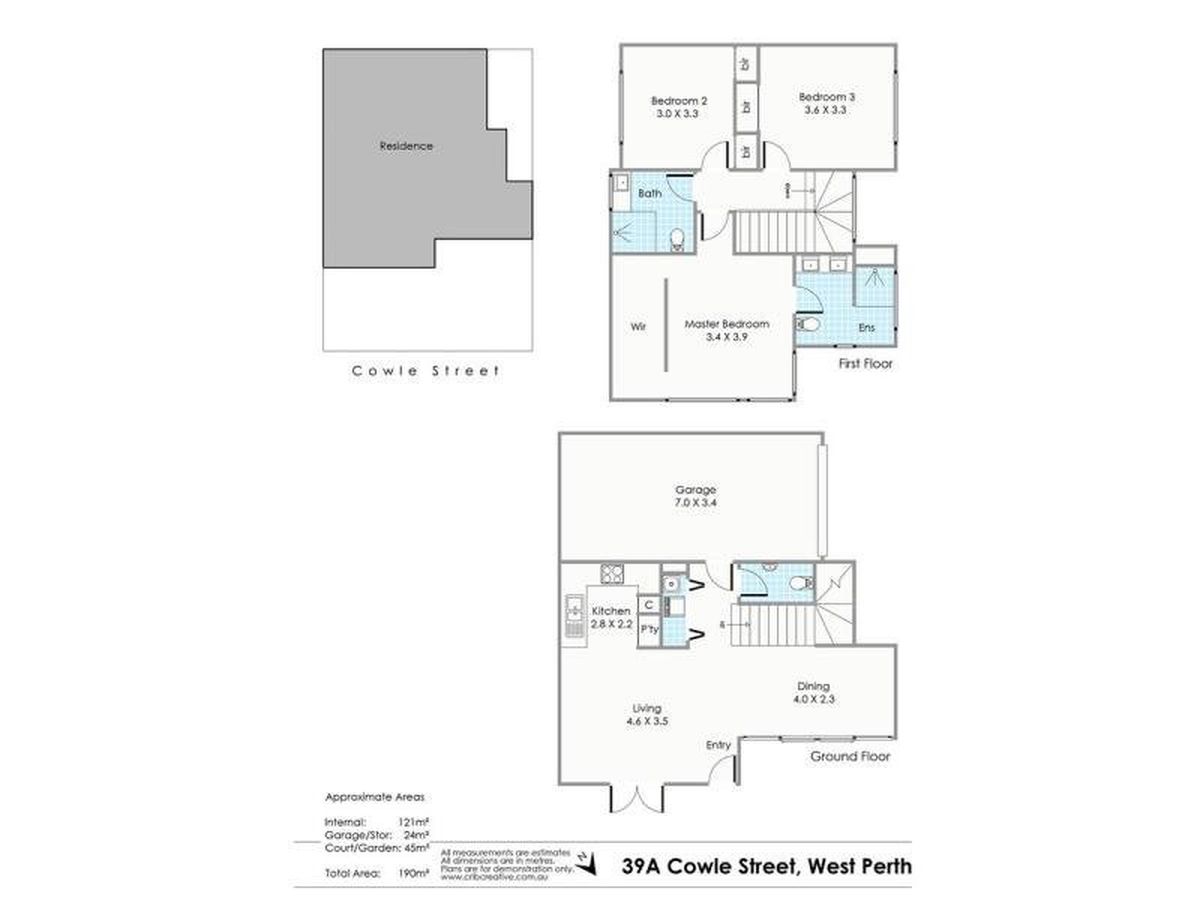 Internal: 121sqm | Courtyard/Garden: 45sqm | Garage: 24sqm | Total: 190sqm