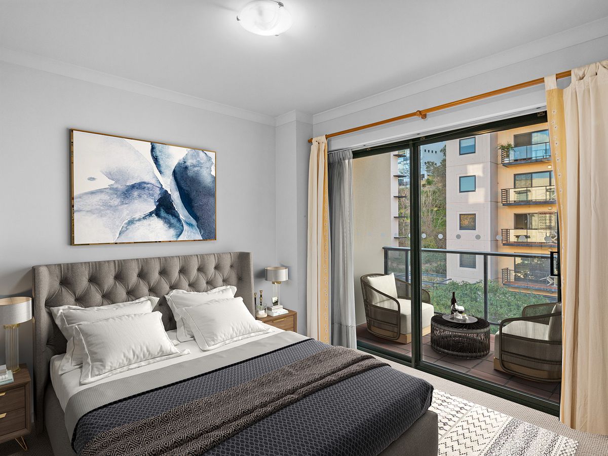 Situated on Mounts Bay Road is this stunning apartment has King's Park as its backdrop. It's just a few minutes from the Perth CBD, making city access easy. The apartment features two bedrooms, an open-plan dining and living area great for entertaining, a kitchen with plenty of storage and stylish granite countertops, a private balcony that lets in natural sunlight, and a peaceful main bedroom with a green view.