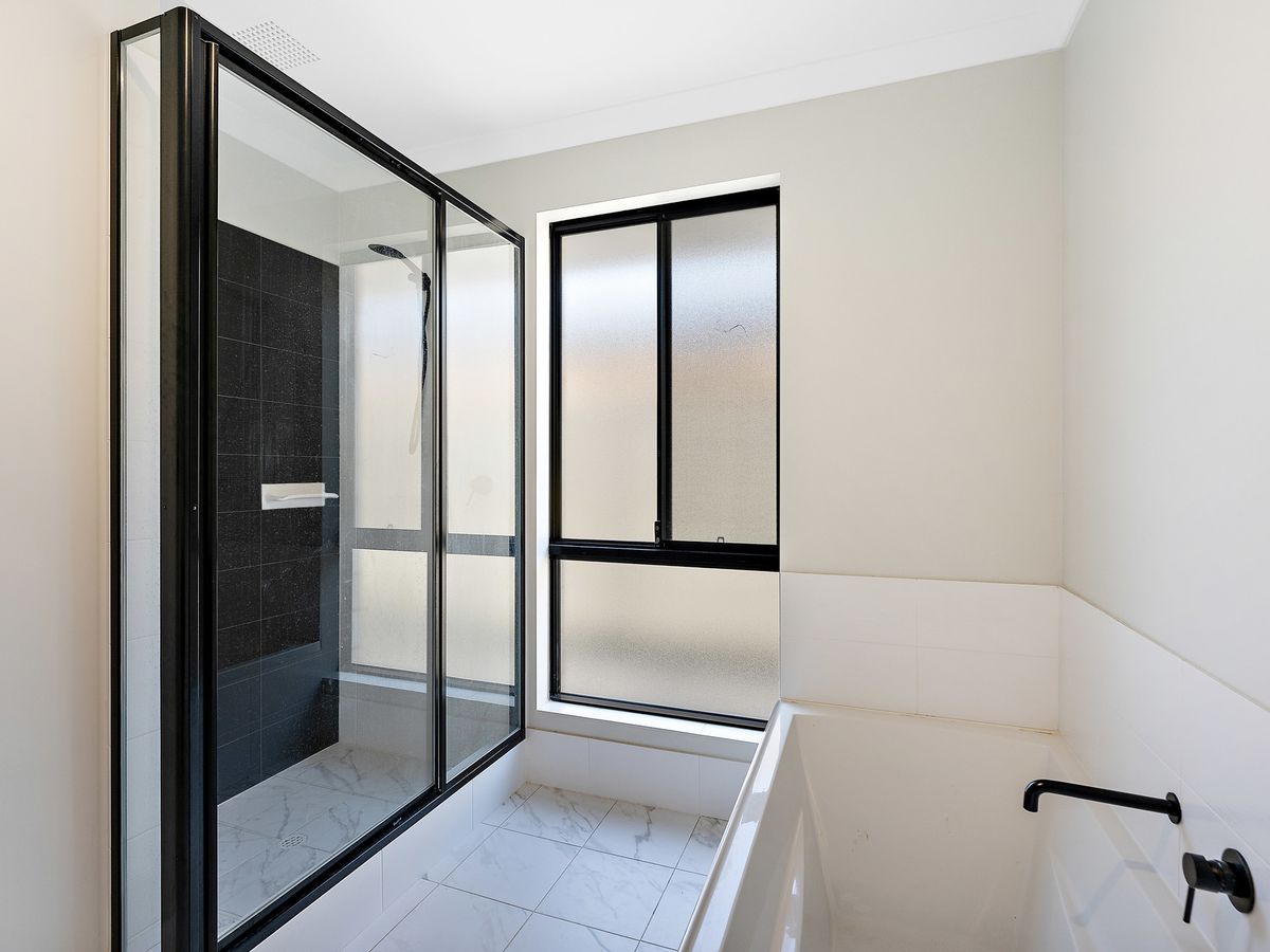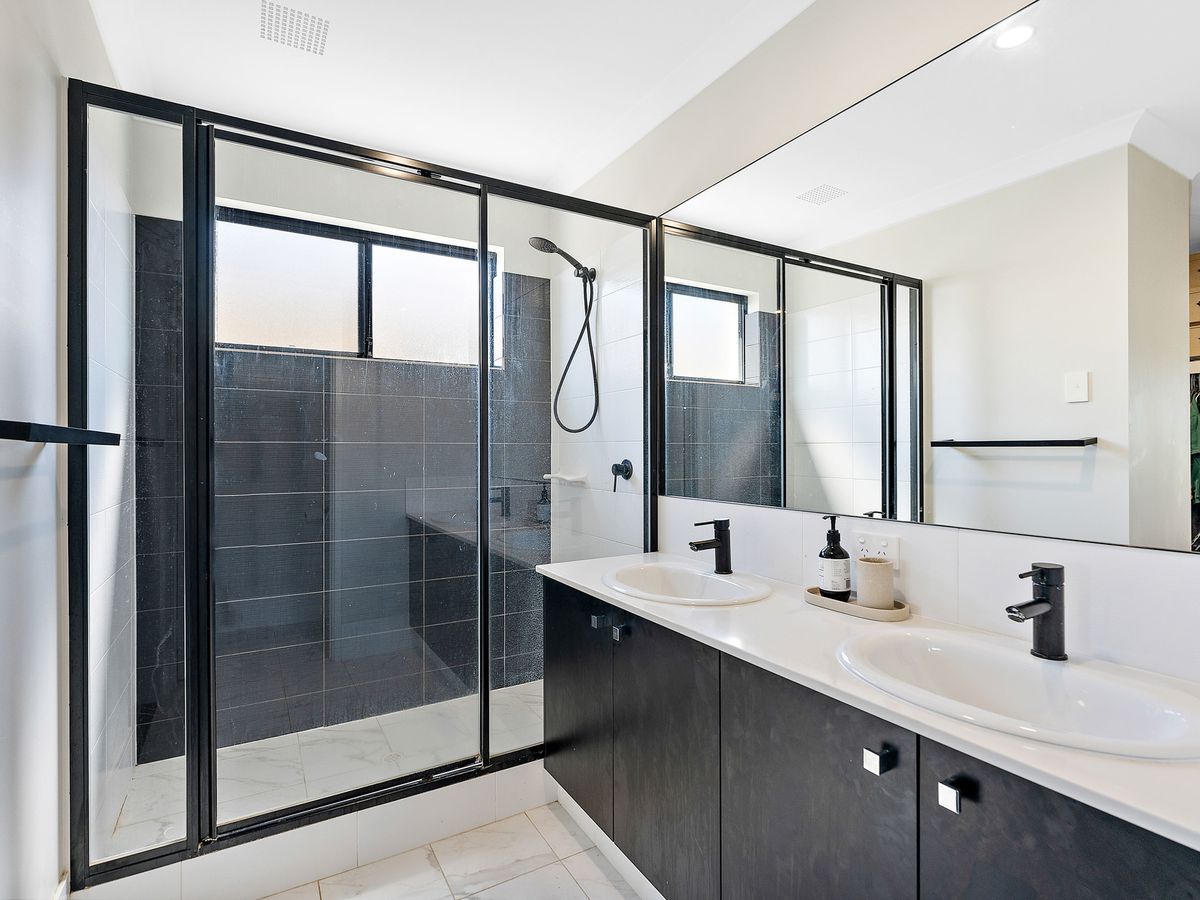 The spacious master suite boasts his and hers walk-in robes and a chic ensuite featuring a double vanity with stone countertops and an expansive shower. The generously sized minor bedrooms all feature double sliding door built-in robes. The second bathroom offers ample space with a sizeable vanity, bathtub, and another oversized shower, complete with a detachable shower head for effortless cleaning. Both the ensuite and second bathroom showcase stylish black and white tones that look amazing.