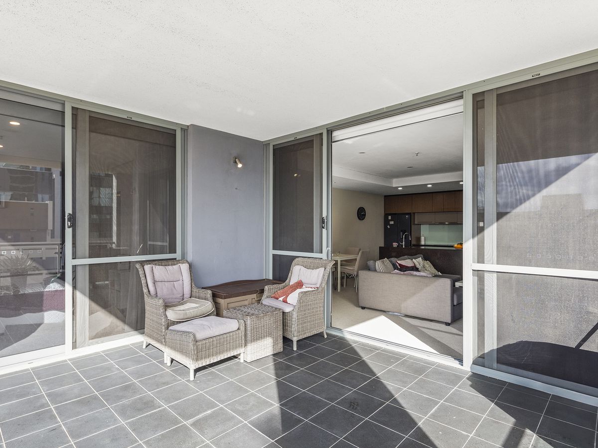 Welcome to this stunning one-bedroom apartment, perched high on Level 8 of the sought-after Rise Apartments. This residence boasts a spacious floorplan, modern fixtures, stone benches, high-quality appliances, plush carpeting, and an expansive entertainer's balcony.