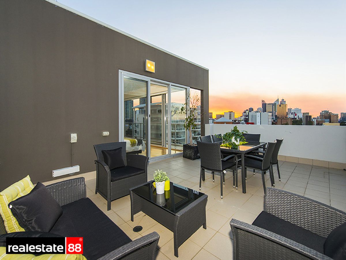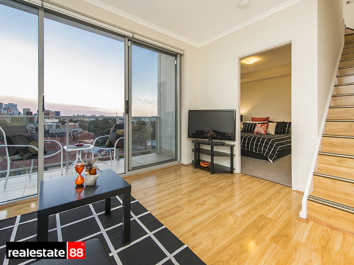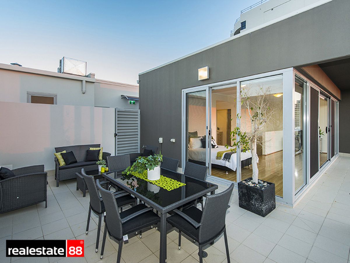An open-plan lounge & dining room with timber style flooring flows effortlessly to the first balcony terrace creating the ultimate entertainer's apartment where you can enjoy the sun-shine & the VIEWS of our growing Perth City each & every day. The functional & bright kitchen is a delight & presents ample bench & cupboard space. The ROOMY upstairs Master Bedroom comes with a luxurious walk-in-wardrobe, additional space for a study area, a designer ensuite bathroom, views to the clouds & beyond & direct access to the HUGE 34sqm roof top entertainer's terrace. The 2nd bedroom is spacious & airy, comes with a built-in-wardrobe & is positioned perfectly for guests. The separate & large chic tiled bathroom with laundry further compliments this home's practical & super stylish design.