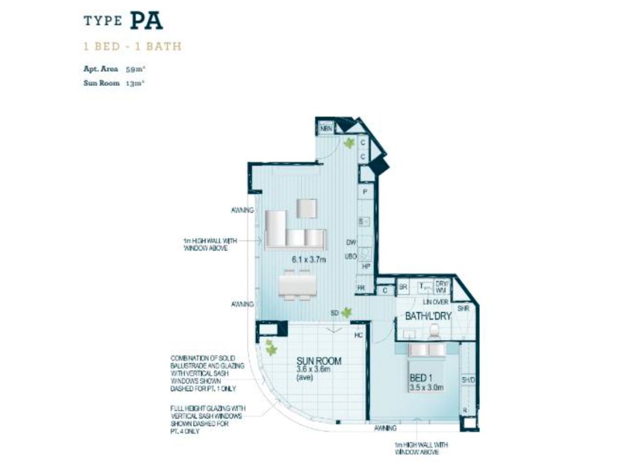 - 72sqm of indoor living space including private sunroom/balcony