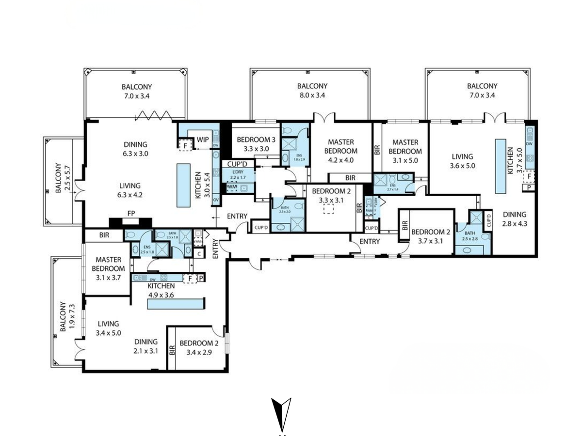 Total Internal Area: 365sqm | Apartment 61: 149sqm | Apartment 62: 102sqm | Apartment 63: 114sqm | Hallway & Ducts: 14.4sqm | Multiple Balconies (Exclusive Use) | 2 Car Garage (Exclusive Use)