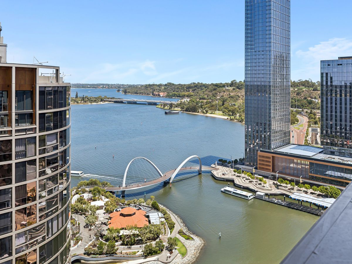 Luxurious Ritz Carlton Residence - A destination and premium location right in the heart of Perth CBD. Watch the fireworks right from the comfort of your home. Positioned on Level 22 within The Ritz-Carlton Hotel Towers at Elizabeth Quay, this exclusive south-west facing residence immediately impresses with its calm sophistication. Floor-to-ceiling glass frames sweeping views across the Swan River, Elizabeth Quay and Kings Park, while the open plan living and dining zone is enriched by custom built-in cabinetry, electric window treatments and a sense of quiet luxury that defines every moment at home.