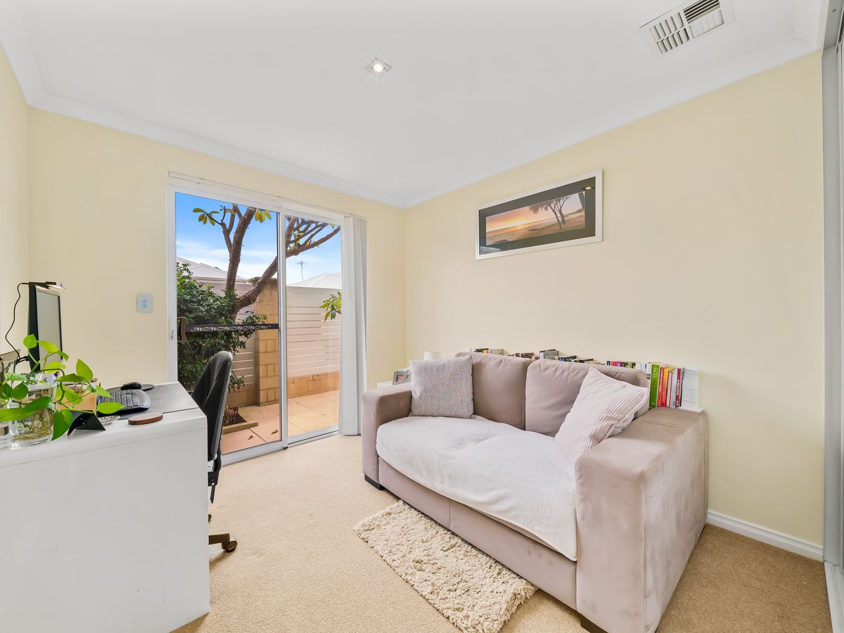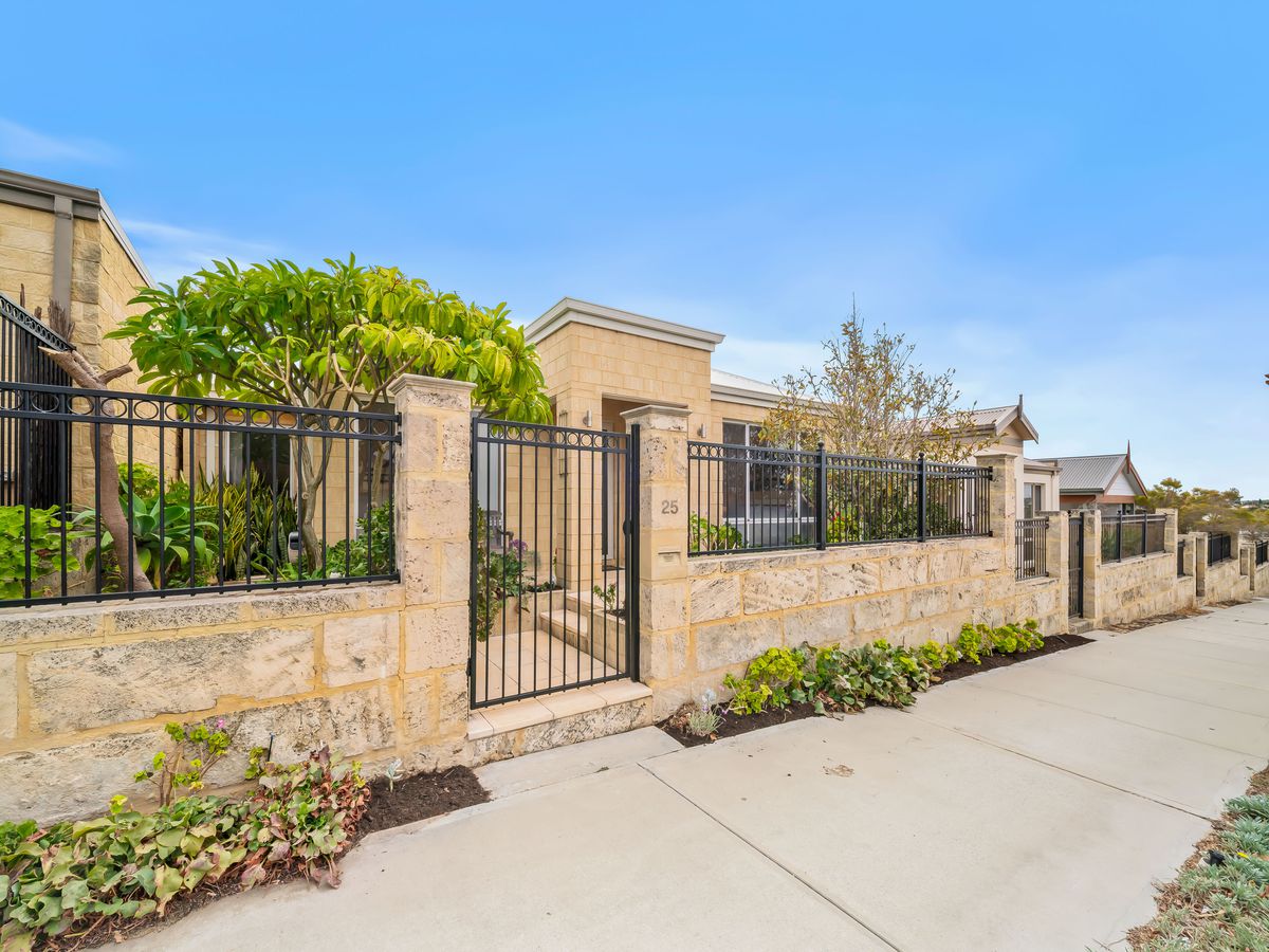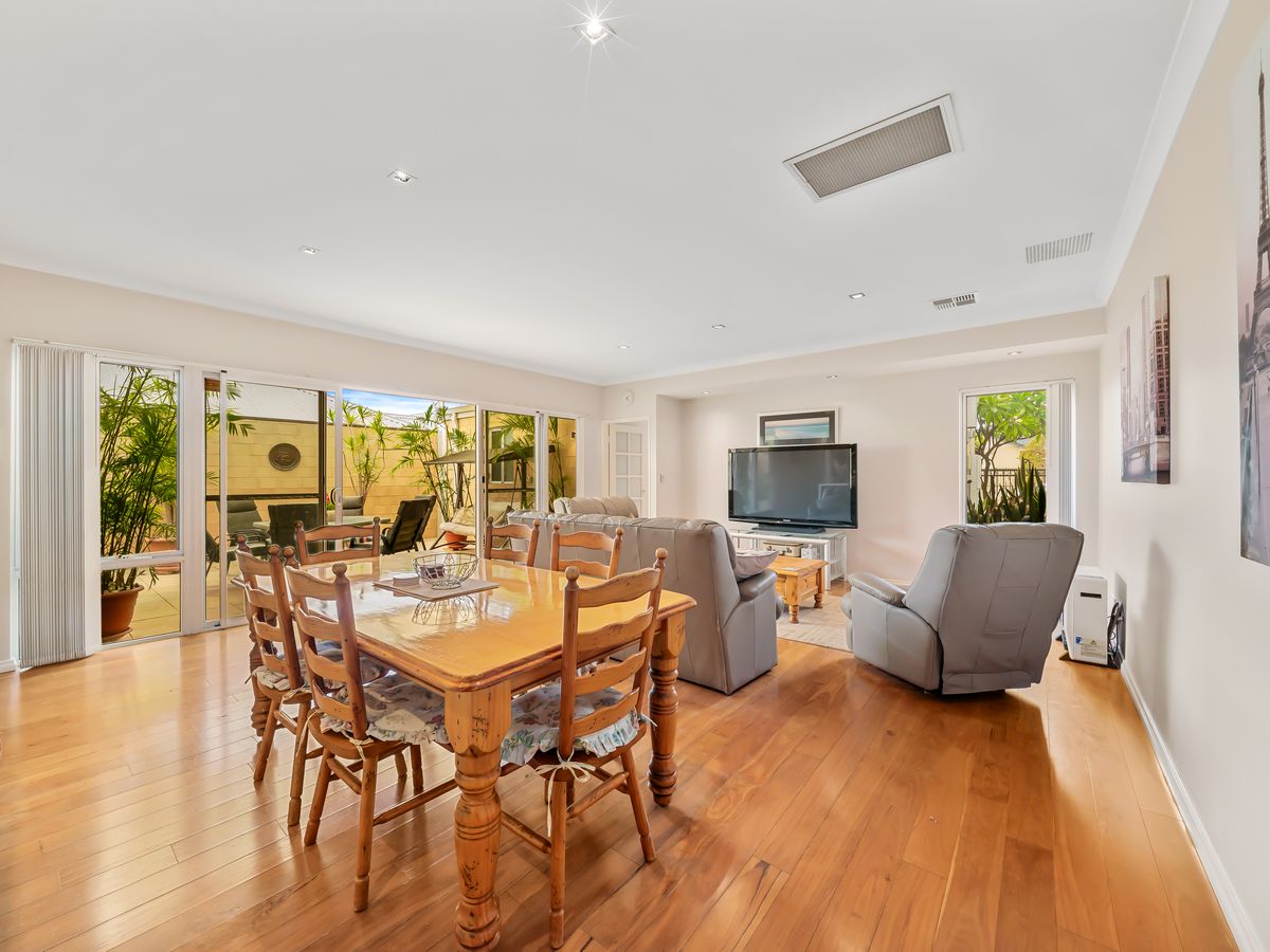 Designed with both style and practicality in mind, the heart of the home features a contemporary kitchen appointed with Corian waterfall benchtops, premium Iridium stainless steel appliances, a five-burner gas cooktop and double DishDrawer, complemented by a full-size pigeon pair fridge freezer. The main living areas flow seamlessly through elegant French doors to multiple outdoor entertaining zones, including three enclosed terraces finished with classic Fremantle stone paving. A separate rear lounge offers additional living flexibility, while feature elements such as the quartz stone wall, designer bathrooms and LED lighting throughout enhance the home's refined appeal.