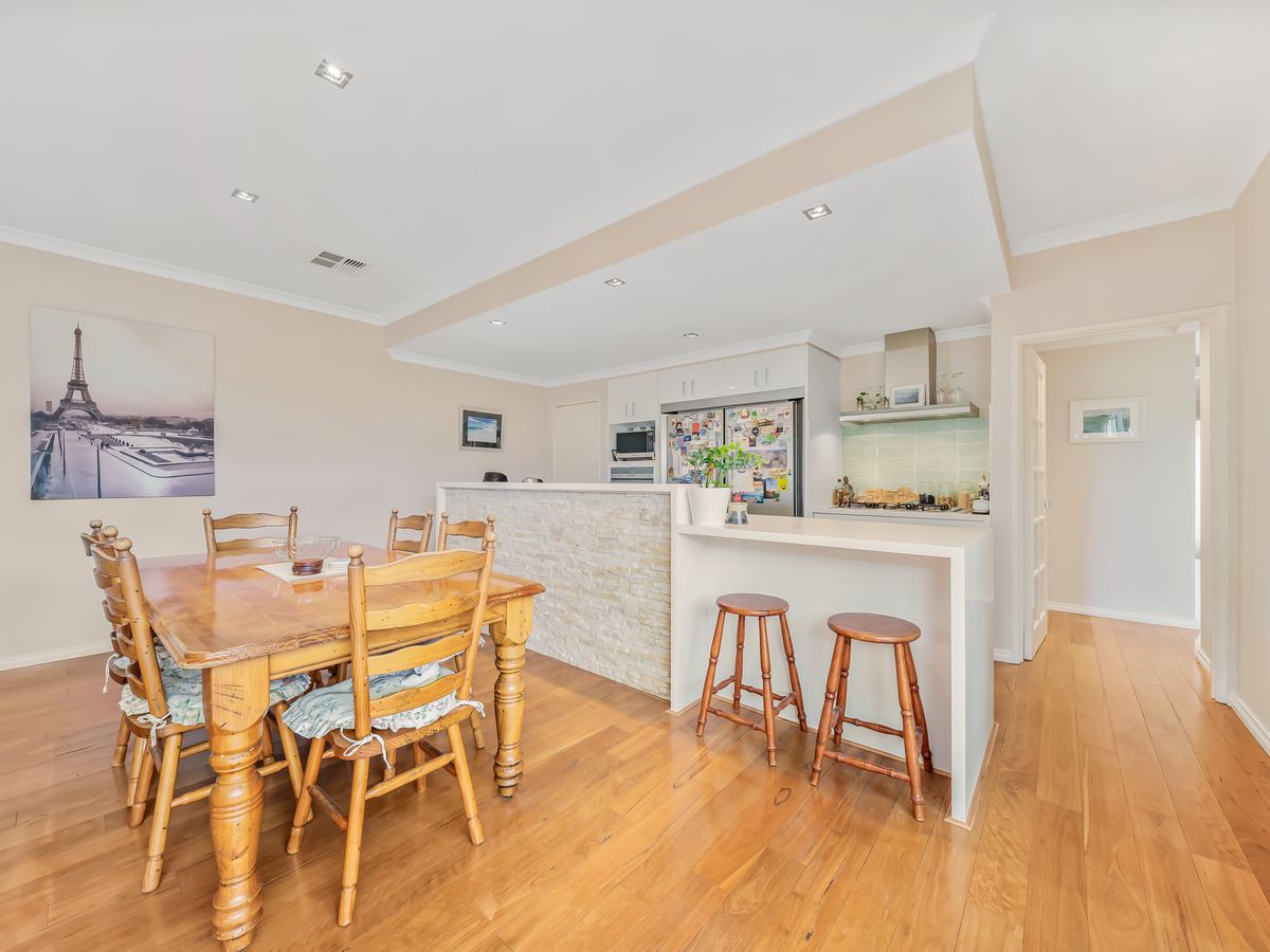 Immaculately presented and beautifully maintained, this elegant residence combines timeless character with modern comfort. Surrounded by a charming established cottage garden, the home immediately impresses with its striking Geographe limestone brickwork and feature stained-glass front door. Freshly painted throughout, the interior showcases hybrid Blackbutt timber flooring across the main living areas and impressive 31c high ceilings, creating a warm yet sophisticated living environment.