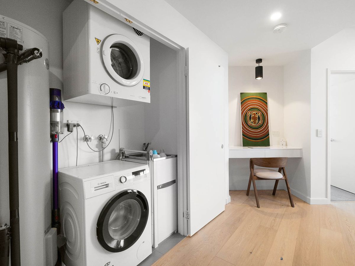 The contemporary kitchen is well-appointed with quality appliances, ample storage, and sleek finishes - ideal for both everyday living and entertaining. Both bedrooms are generously sized with built-in robes and excellent natural light, while the master bedroom features a private ensuite. The second bathroom is equally well-presented and incorporates a discreet European laundry for added convenience.